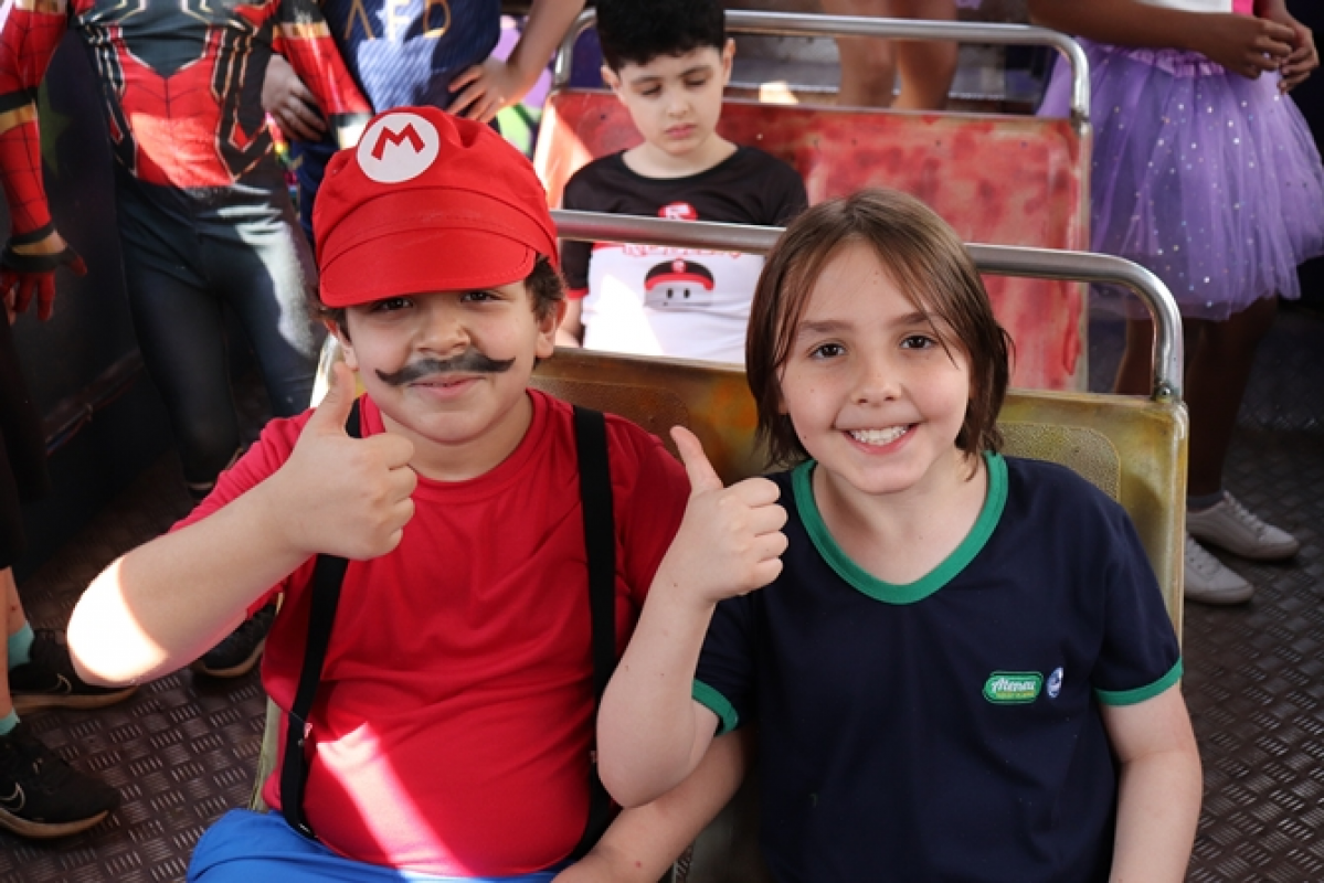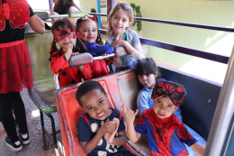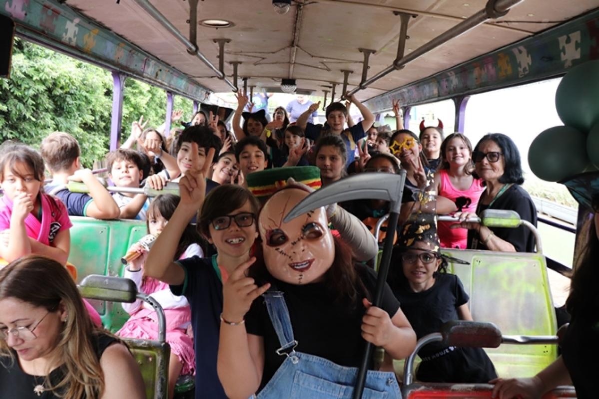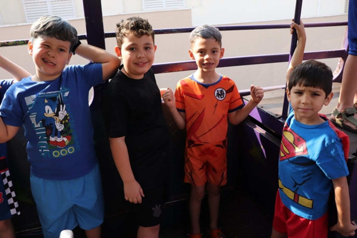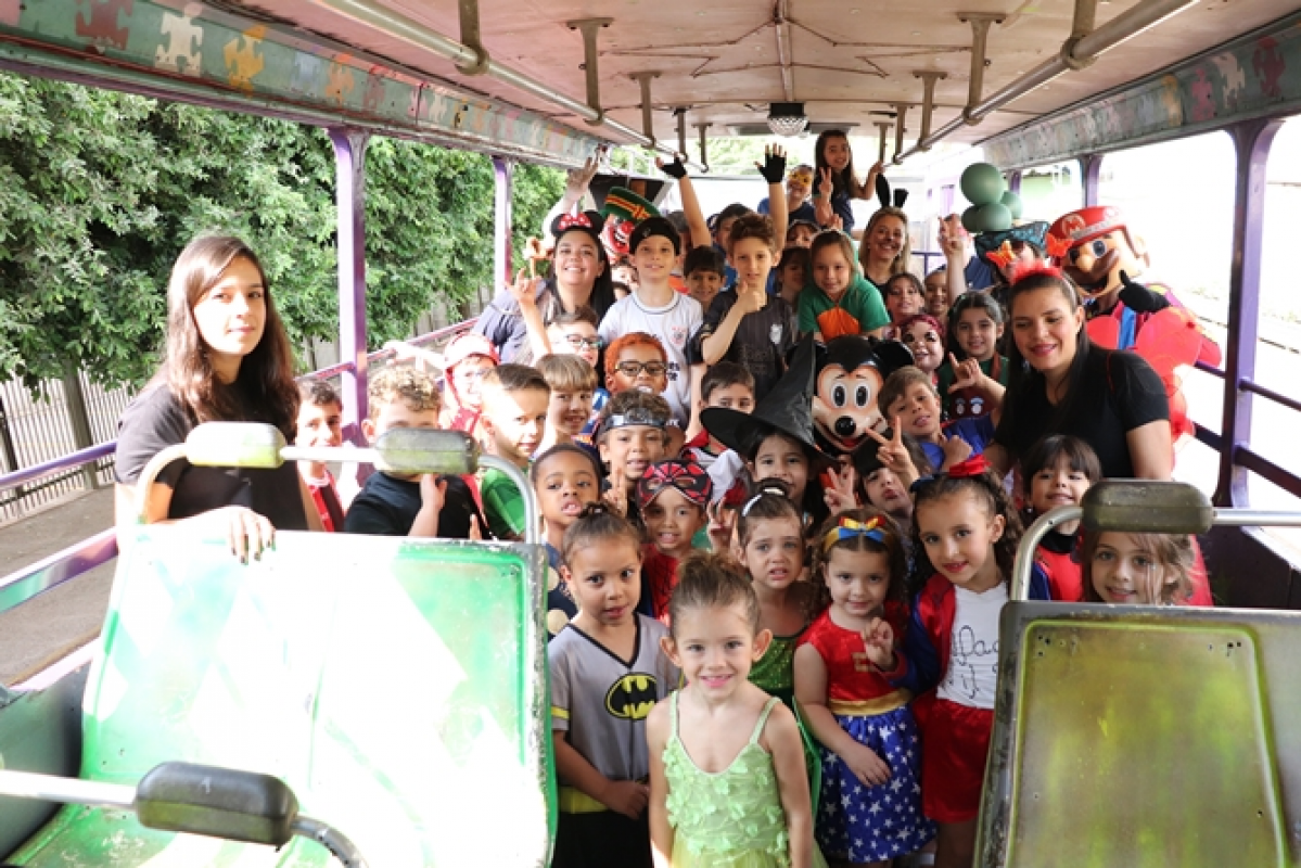 As comemorações começaram de forma lúdica e descontraída com um passeio de trenzinho, no qual os alunos puderam ir fantasiados, marcando o primeiro dia de atividades.
