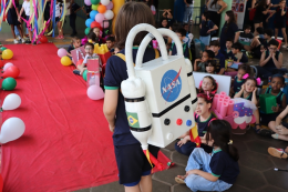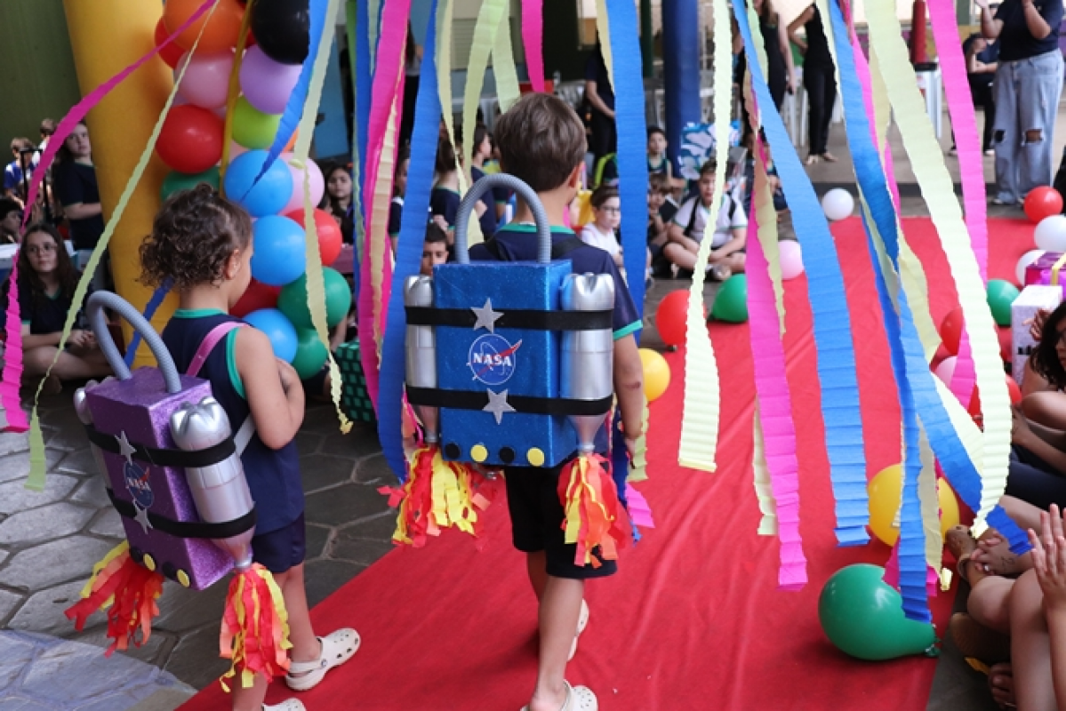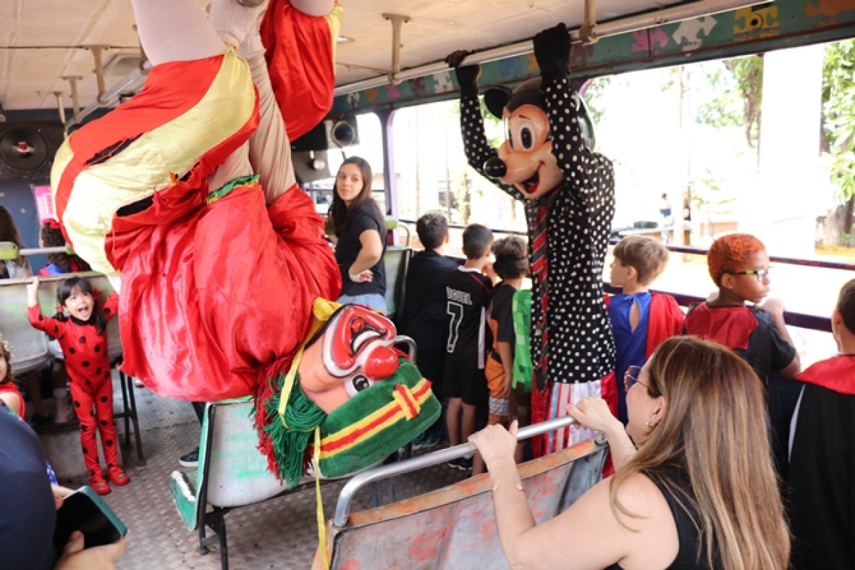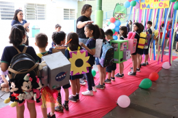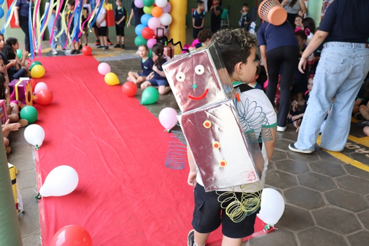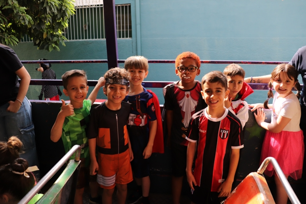 As comemorações começaram de forma lúdica e descontraída com um passeio de trenzinho, no qual os alunos puderam ir fantasiados, marcando o primeiro dia de atividades.