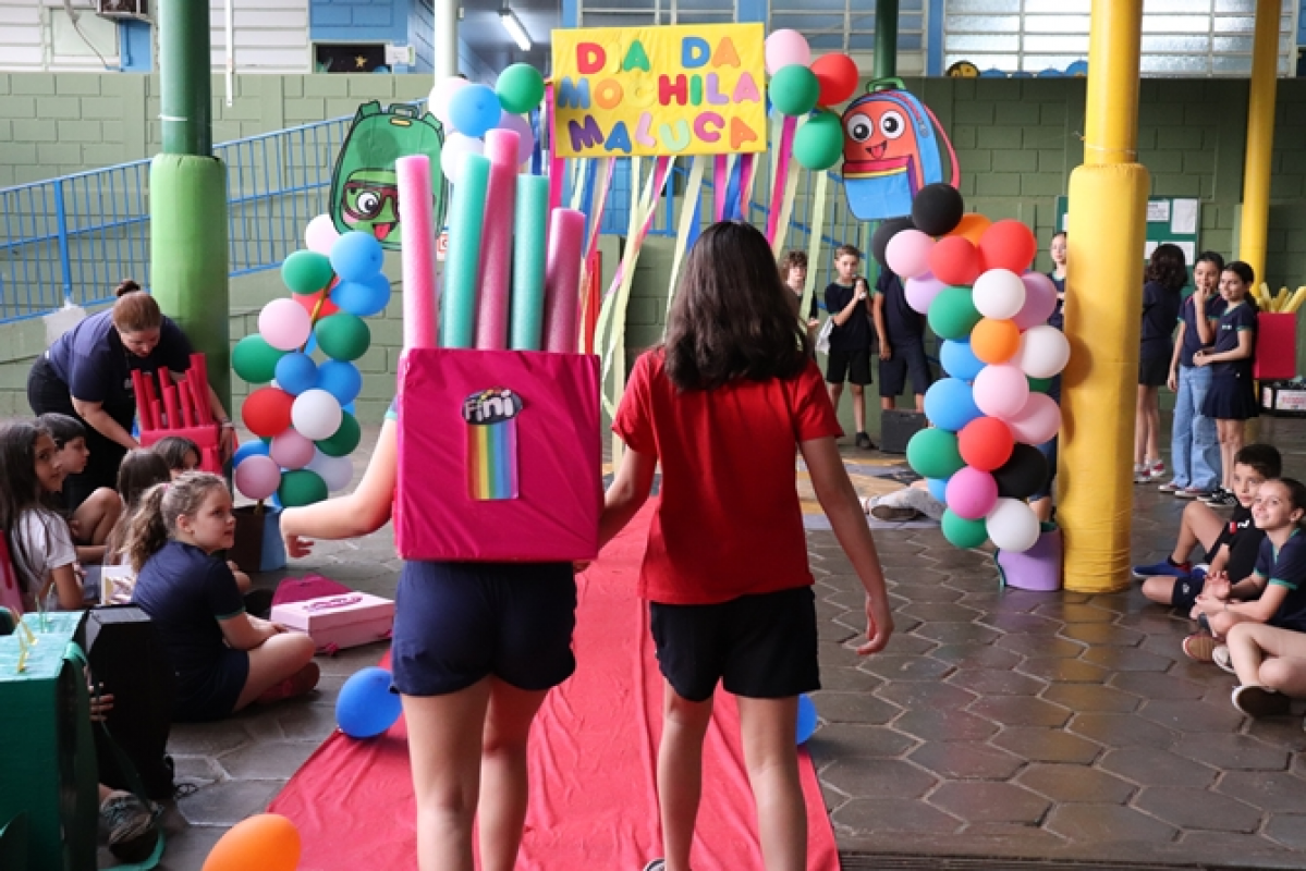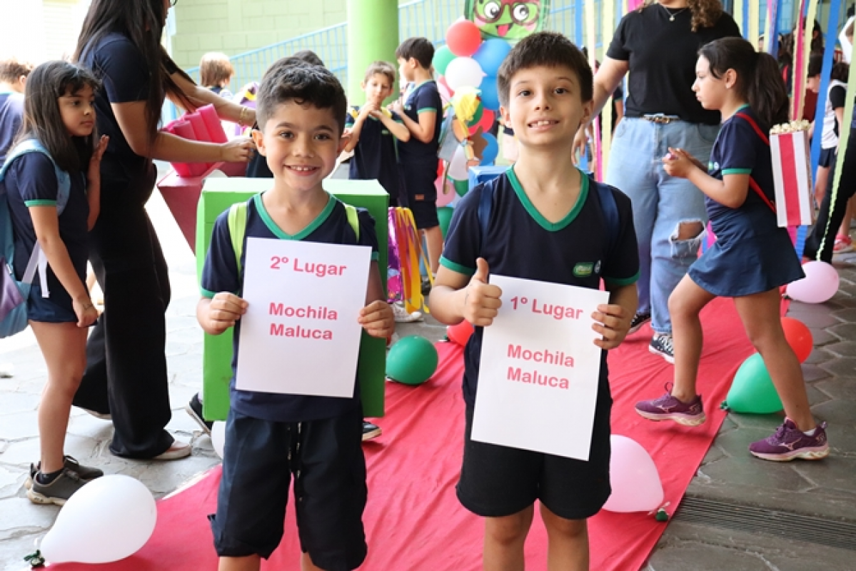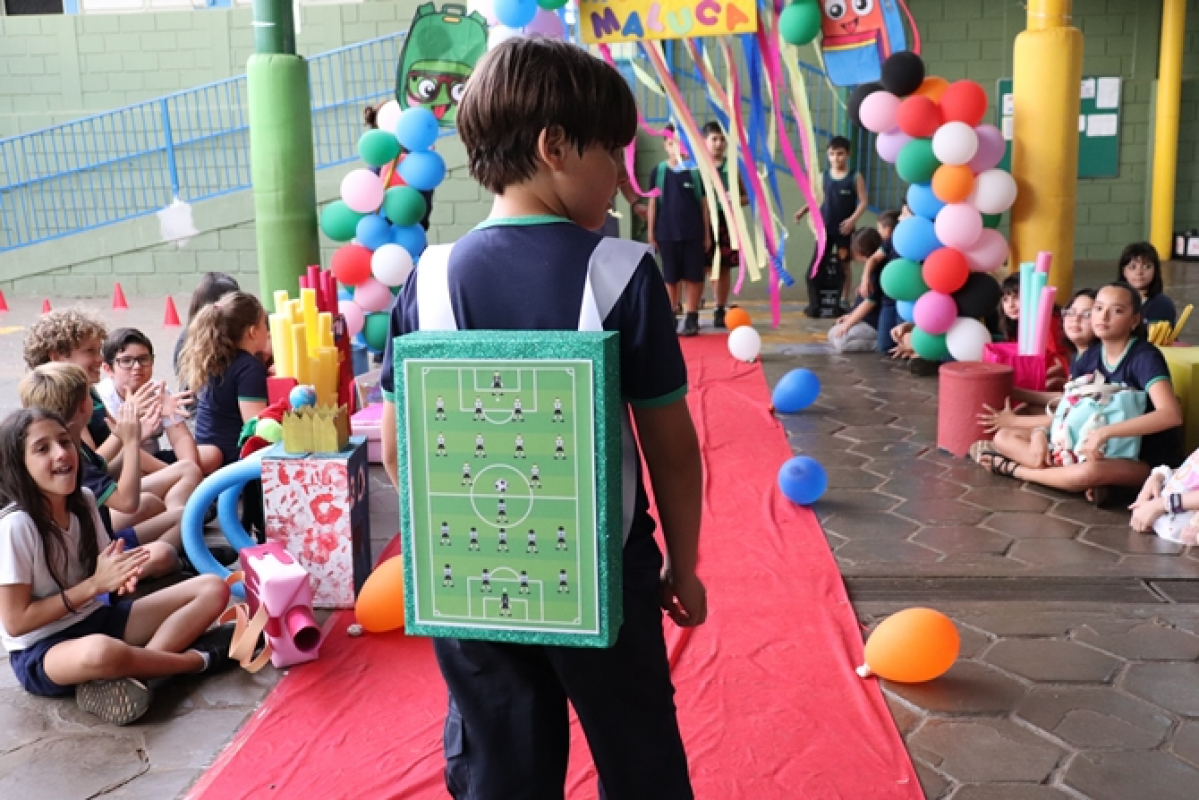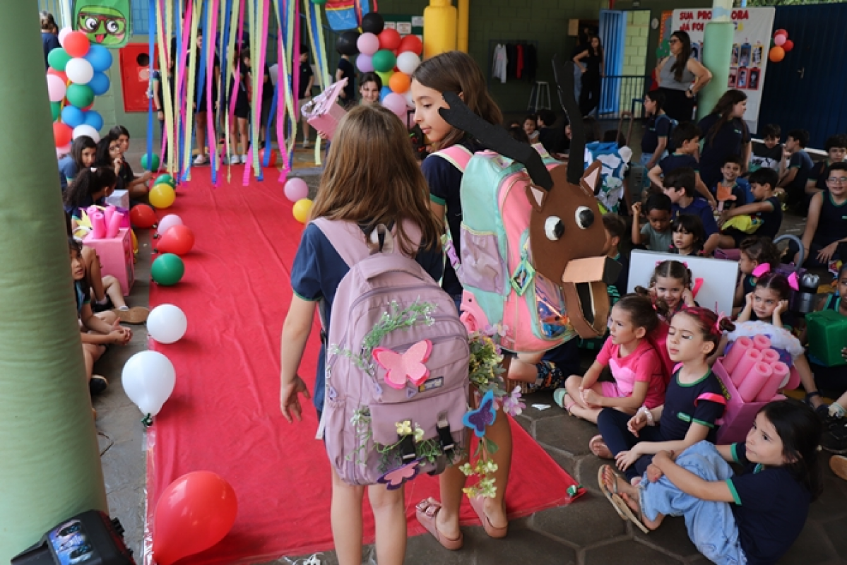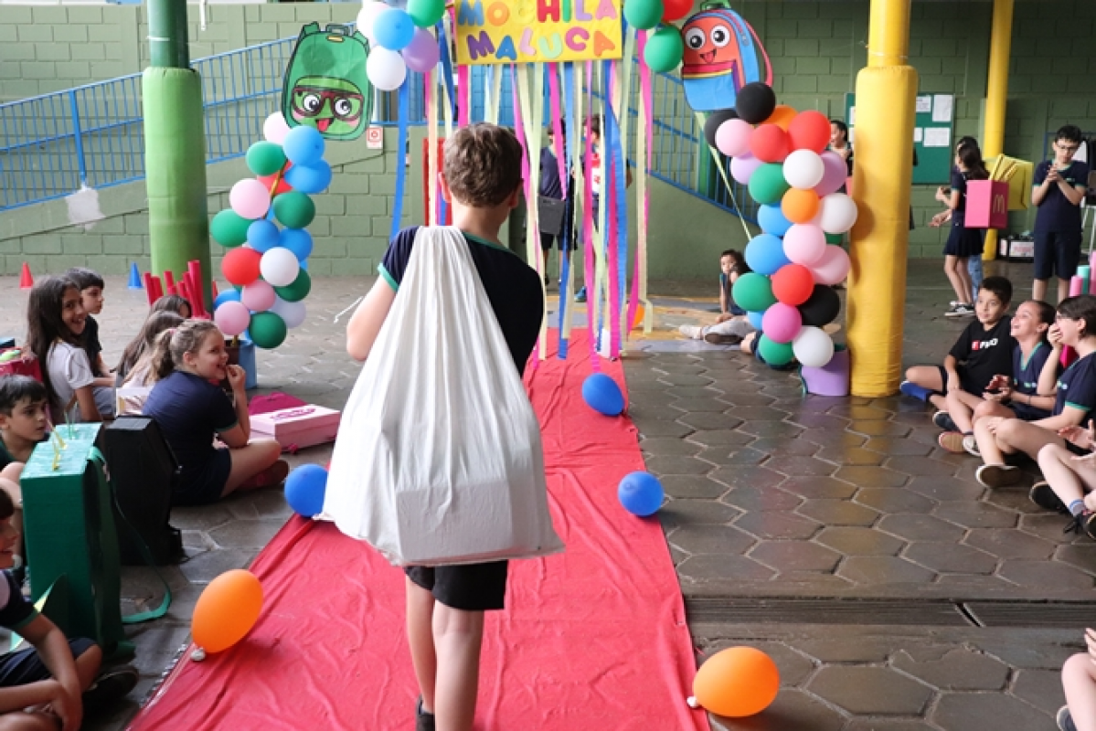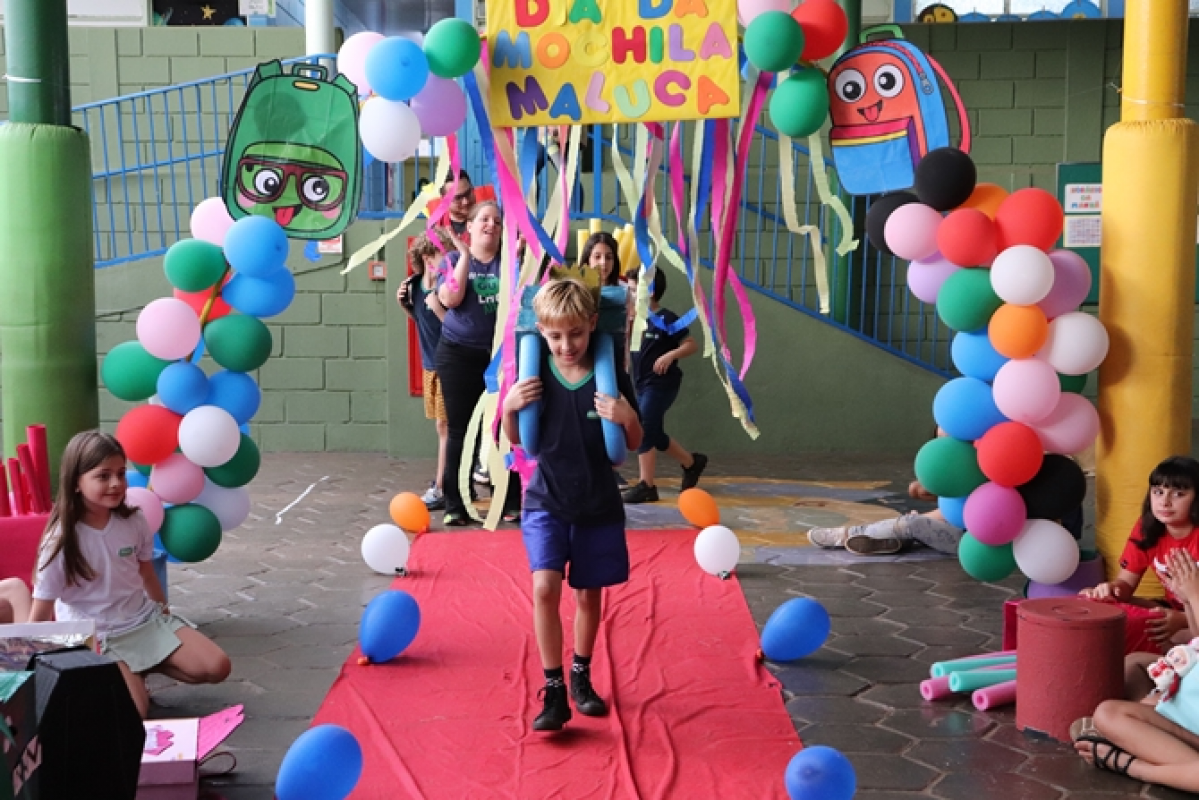 No segundo dia, o tema foi “Diversão ao Ar Livre e Integração”, com uma programação repleta de atividades em grupo. Destaque para o divertido desfile “Mochila Maluca”, em que os alunos customizaram suas mochilas com itens criativos e desfilaram em uma passarela. Outro momento especial foi o “Dia do Amigo”, em que cada criança pôde convidar um colega de fora da escola para participar das dinâmicas do dia. Além disso, diversas gincanas animaram os alunos, com jogos como corrida de saco, jogo da cadeira, quiz de conhecimentos gerais e a popular brincadeira “torta na cara”.