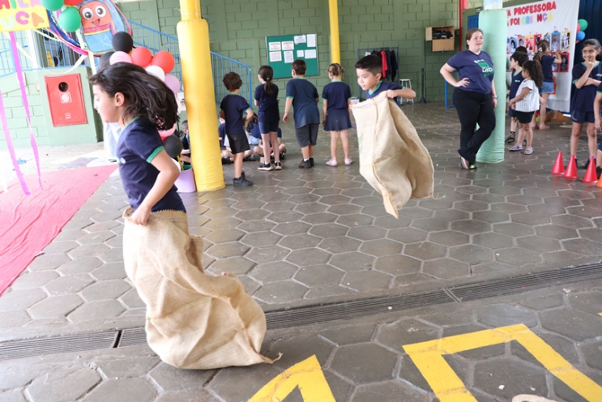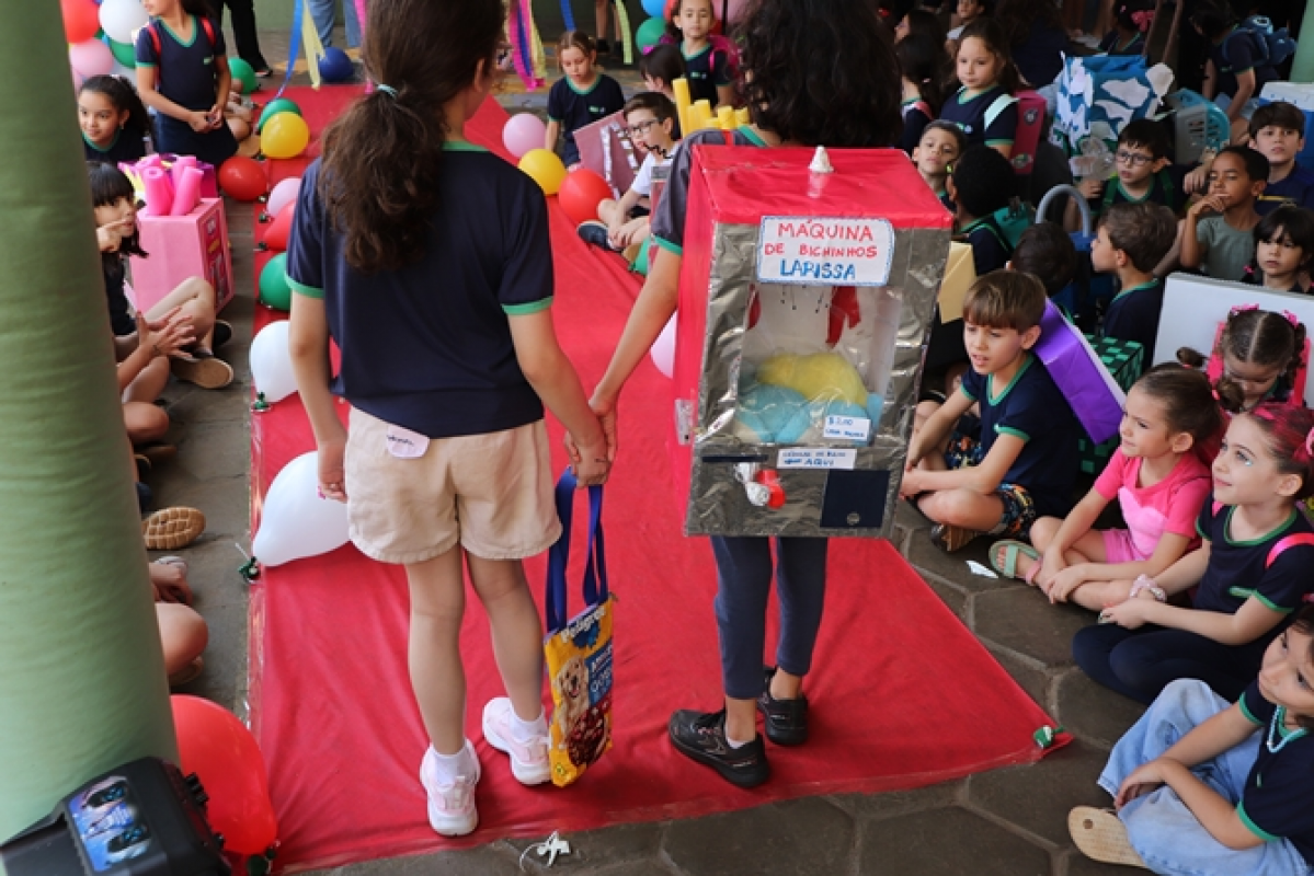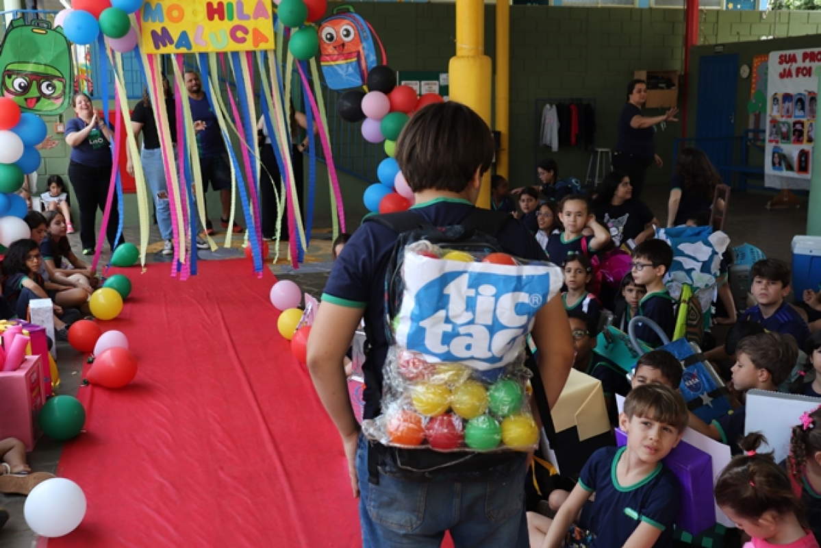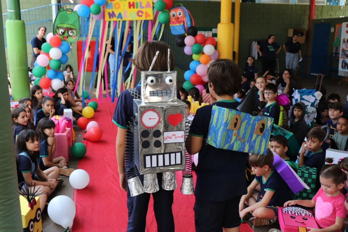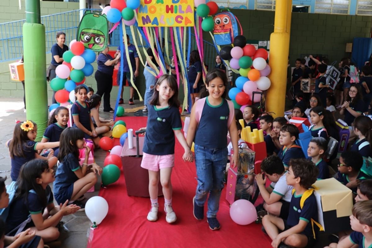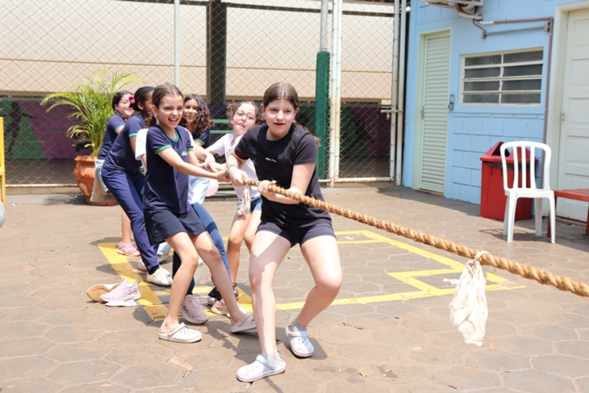 No segundo dia, o tema foi “Diversão ao Ar Livre e Integração”, com uma programação repleta de atividades em grupo. Destaque para o divertido desfile “Mochila Maluca”, em que os alunos customizaram suas mochilas com itens criativos e desfilaram em uma passarela. Outro momento especial foi o “Dia do Amigo”, em que cada criança pôde convidar um colega de fora da escola para participar das dinâmicas do dia. Além disso, diversas gincanas animaram os alunos, com jogos como corrida de saco, jogo da cadeira, quiz de conhecimentos gerais e a popular brincadeira “torta na cara”.