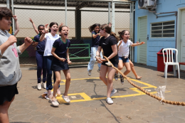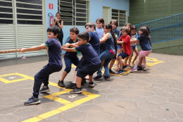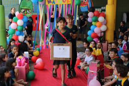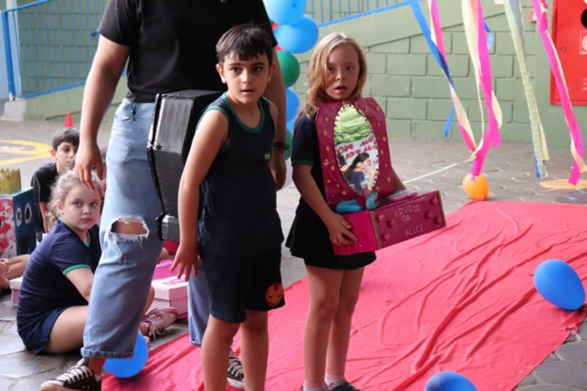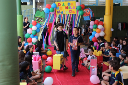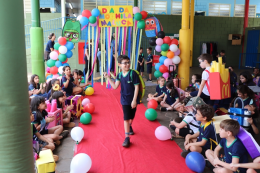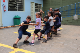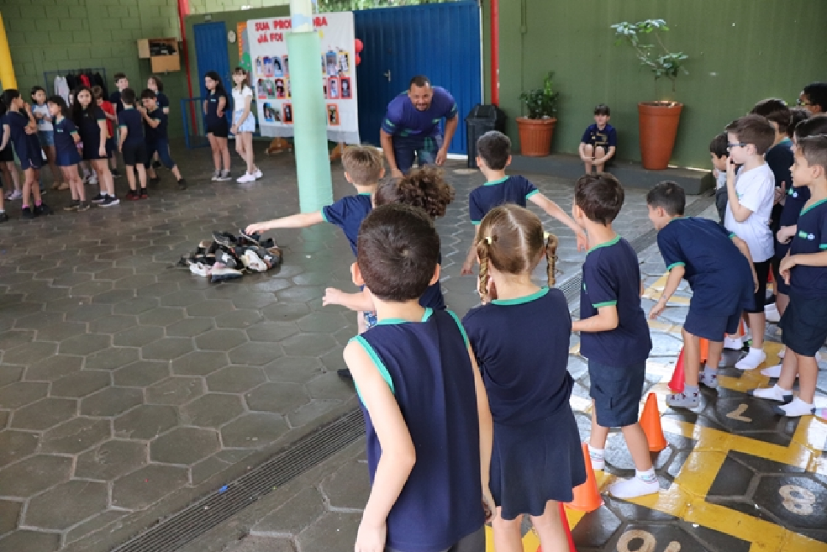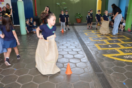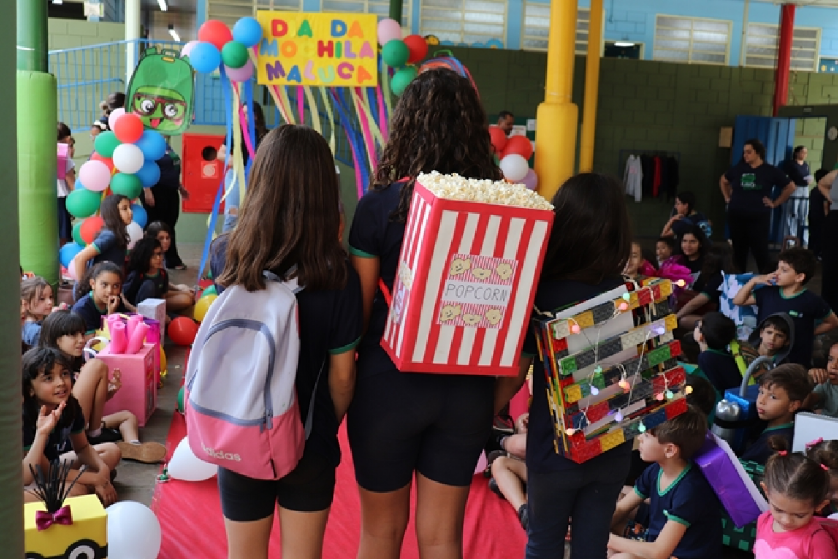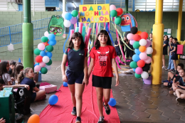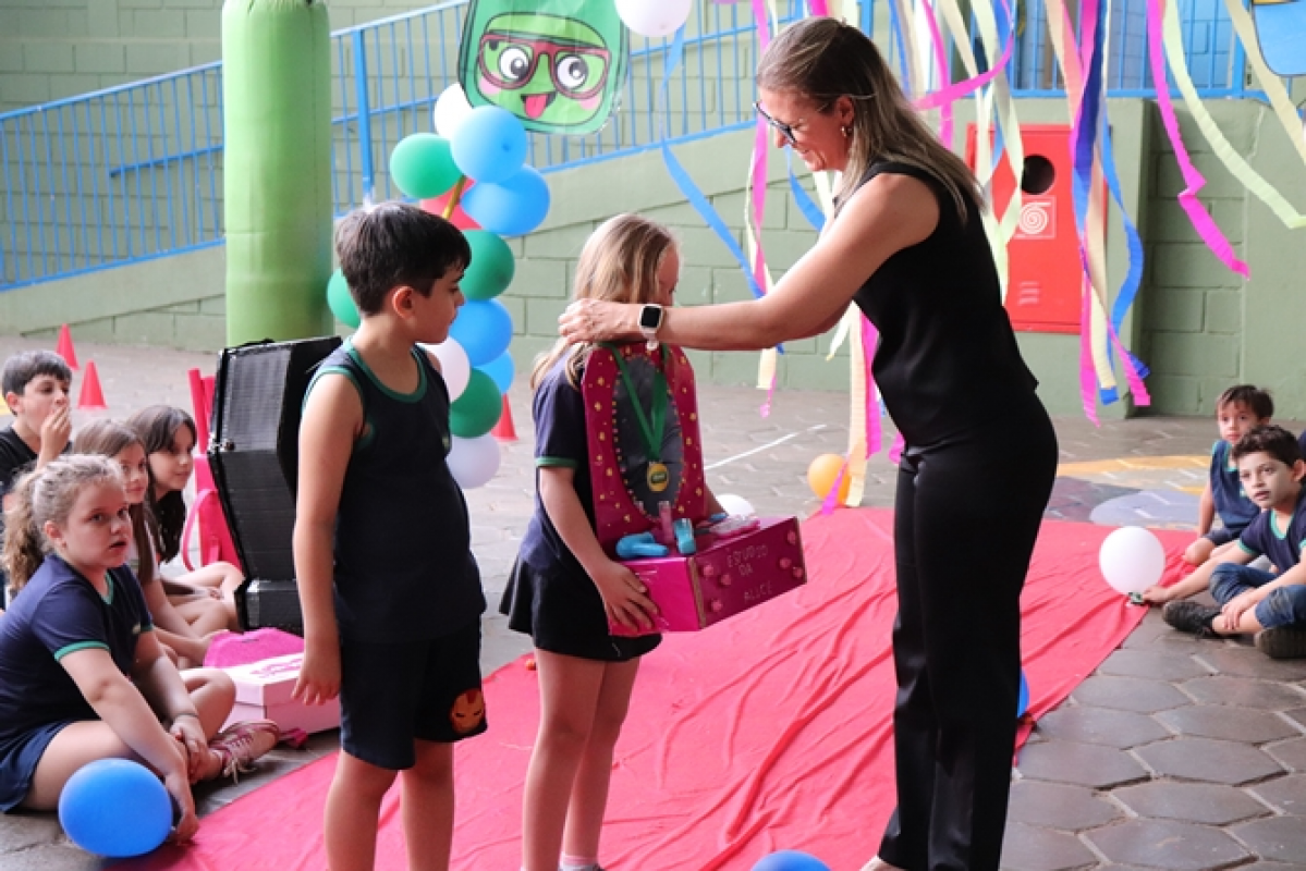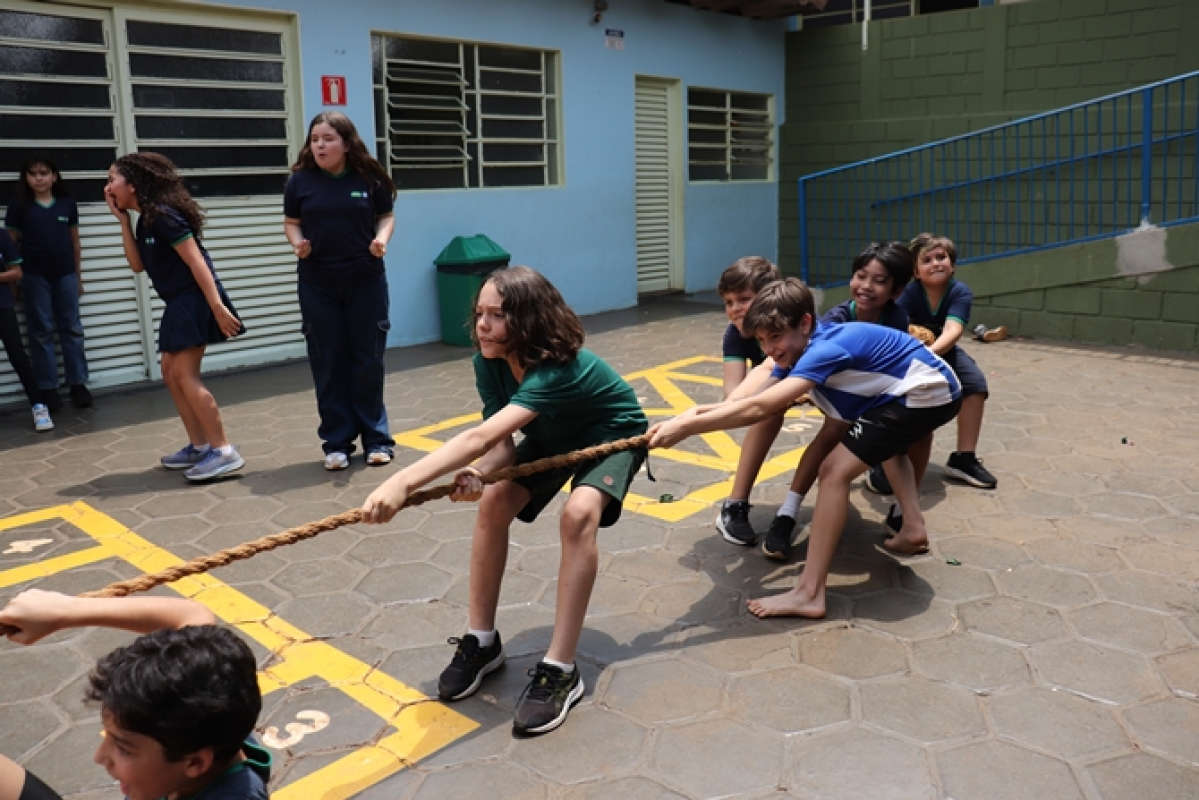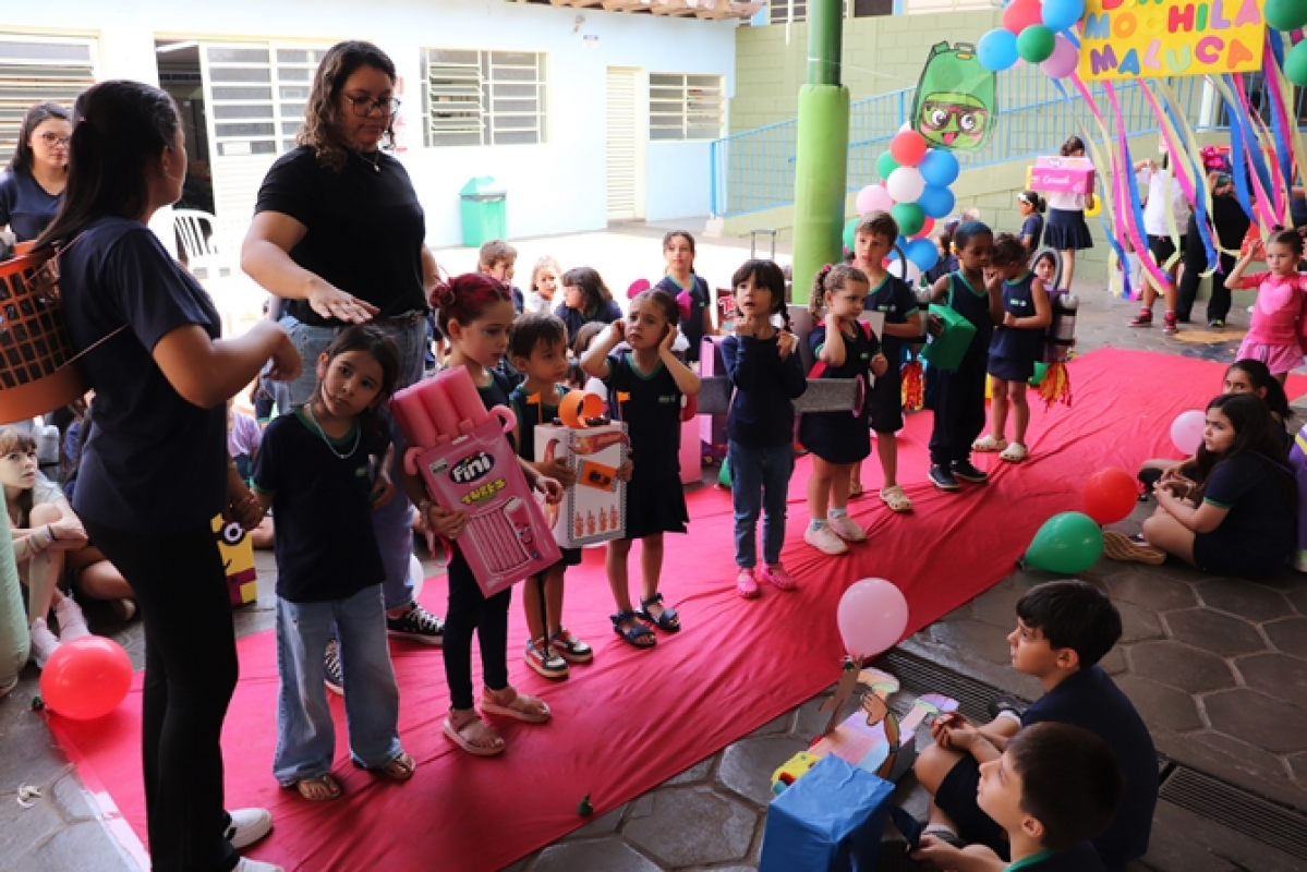 No segundo dia, o tema foi “Diversão ao Ar Livre e Integração”, com uma programação repleta de atividades em grupo. Destaque para o divertido desfile “Mochila Maluca”, em que os alunos customizaram suas mochilas com itens criativos e desfilaram em uma passarela. Outro momento especial foi o “Dia do Amigo”, em que cada criança pôde convidar um colega de fora da escola para participar das dinâmicas do dia. Além disso, diversas gincanas animaram os alunos, com jogos como corrida de saco, jogo da cadeira, quiz de conhecimentos gerais e a popular brincadeira “torta na cara”.