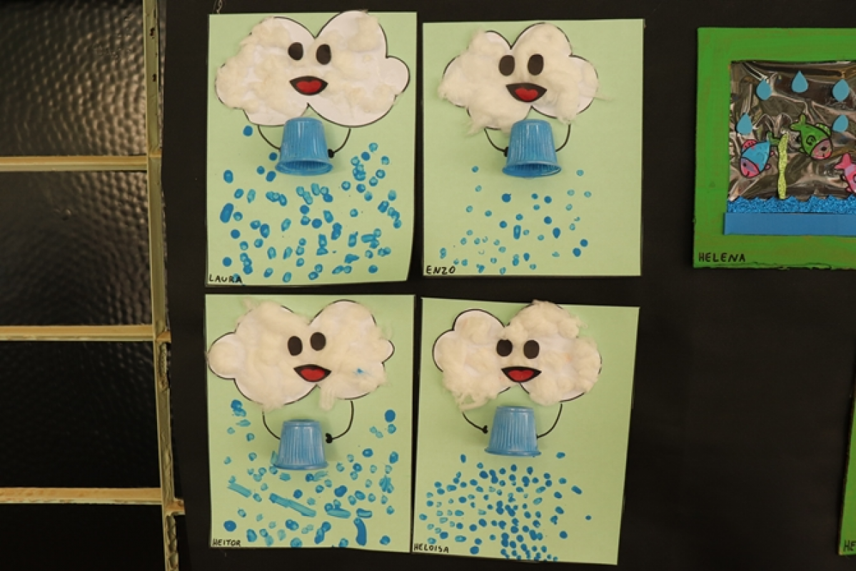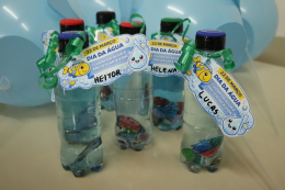 Além das vivências, os alunos também participaram da confecção de materiais como garrafinhas e saquinhos temáticos, e receberam bexigas em formato de gota como lembrança da atividade.