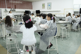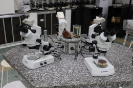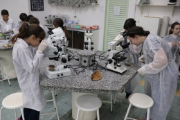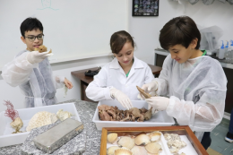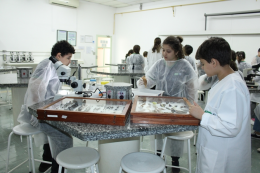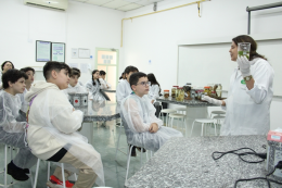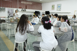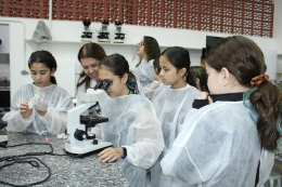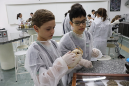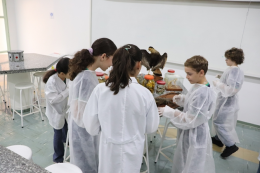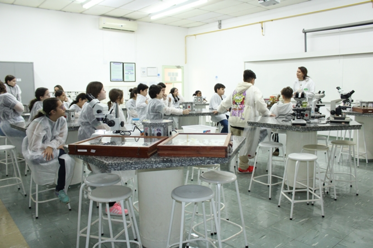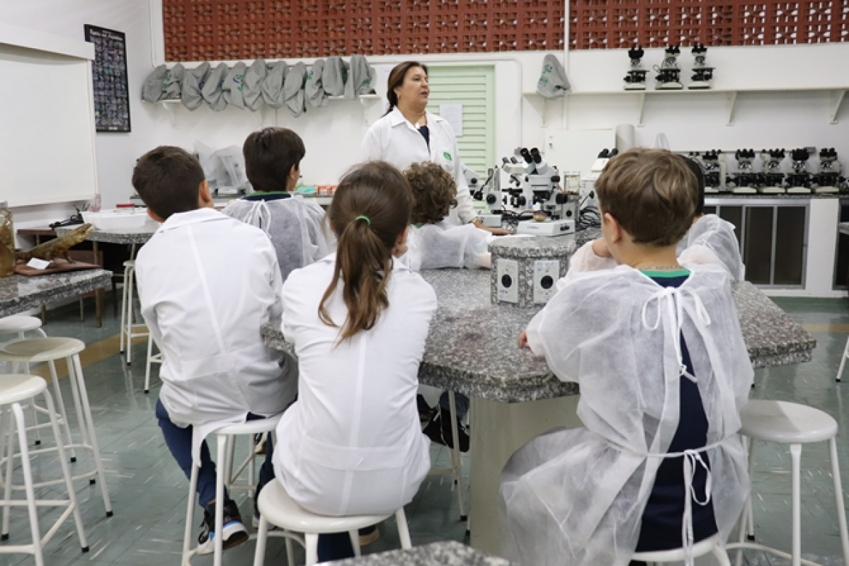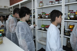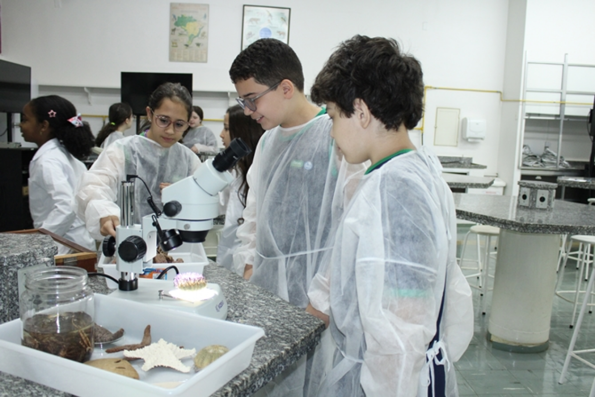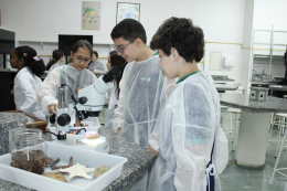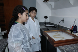 As atividades dos dias 10 e 11 de setembro começaram com uma aula prática ministrada pela professora Maria Regina Suavinha no laboratório, sobre o tema “Seres Vivos”. Inicialmente, houve uma exposição teórica sobre as características de animais invertebrados e vertebrados. Depois, os alunos puderam interagir com as peças expostas, utilizar microscópios e conhecer o Museu de Zoologia da Barão.
