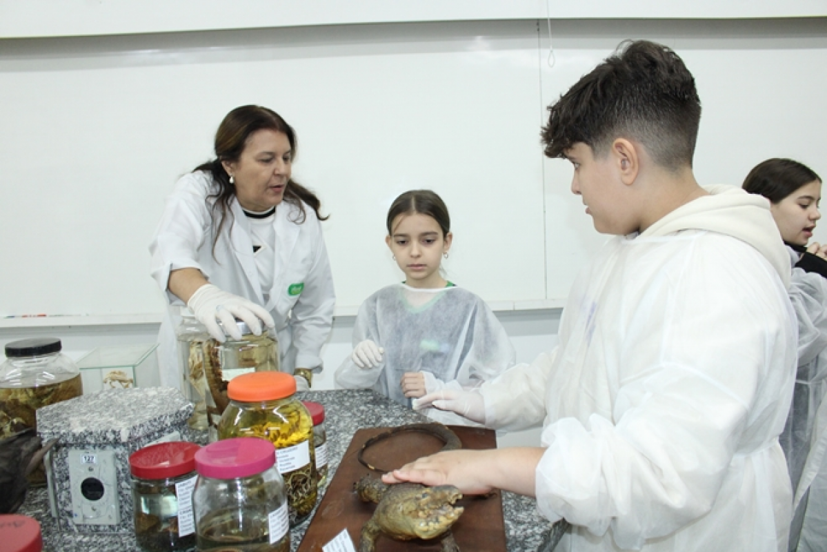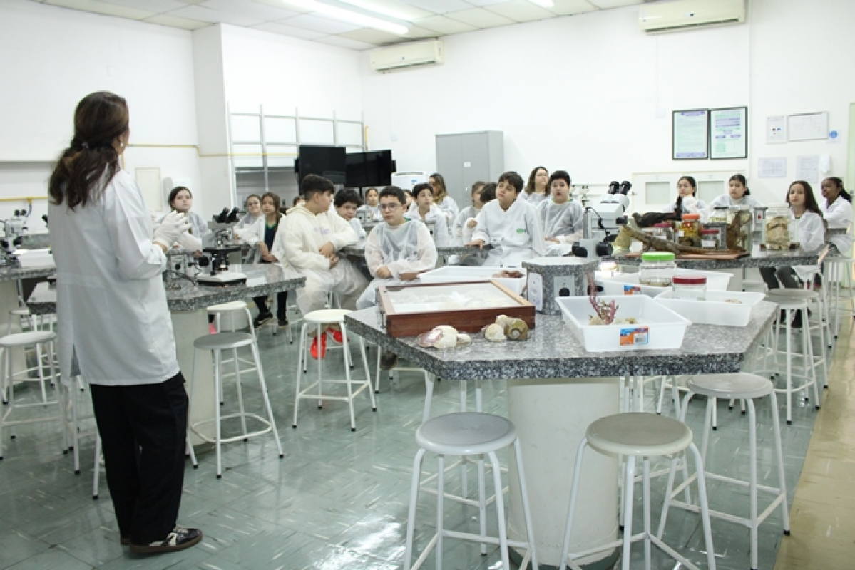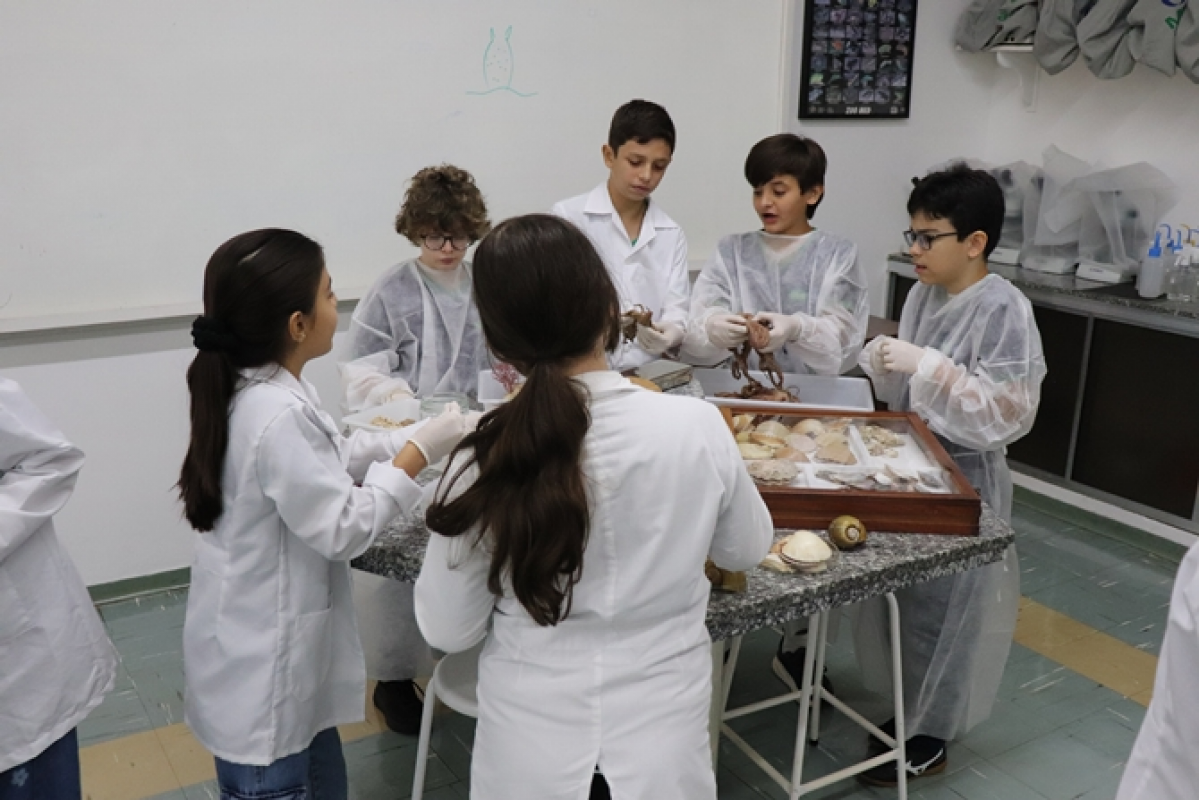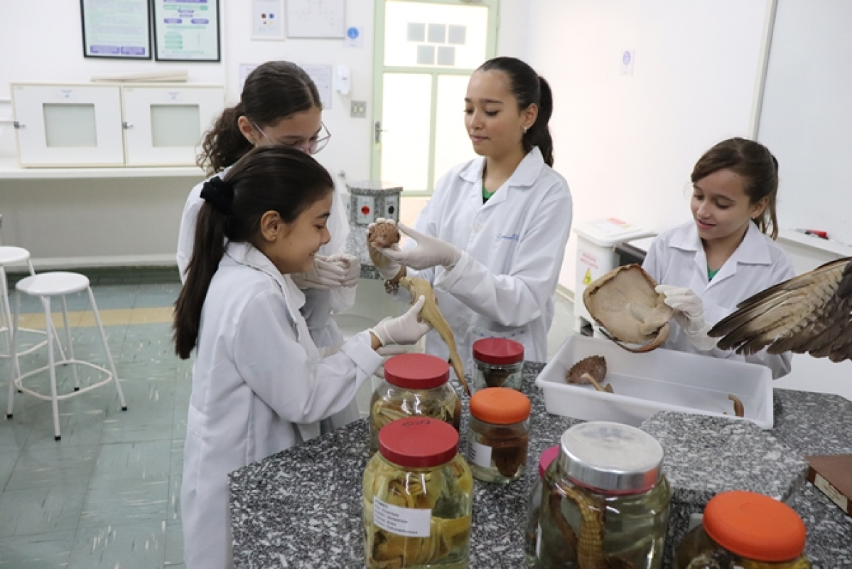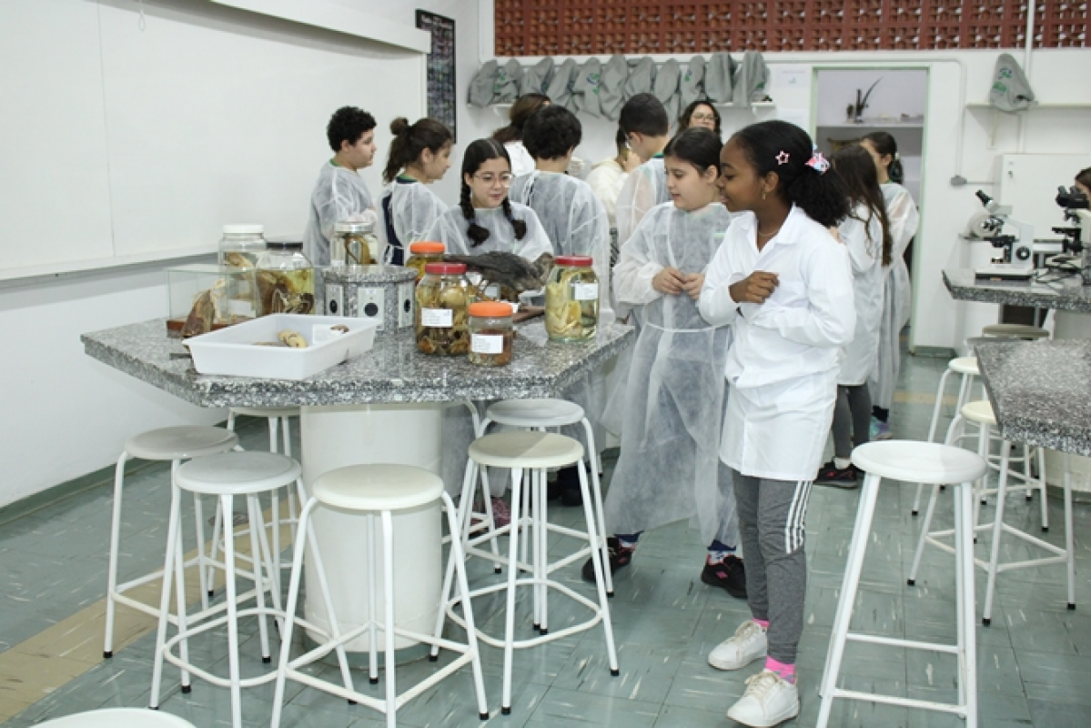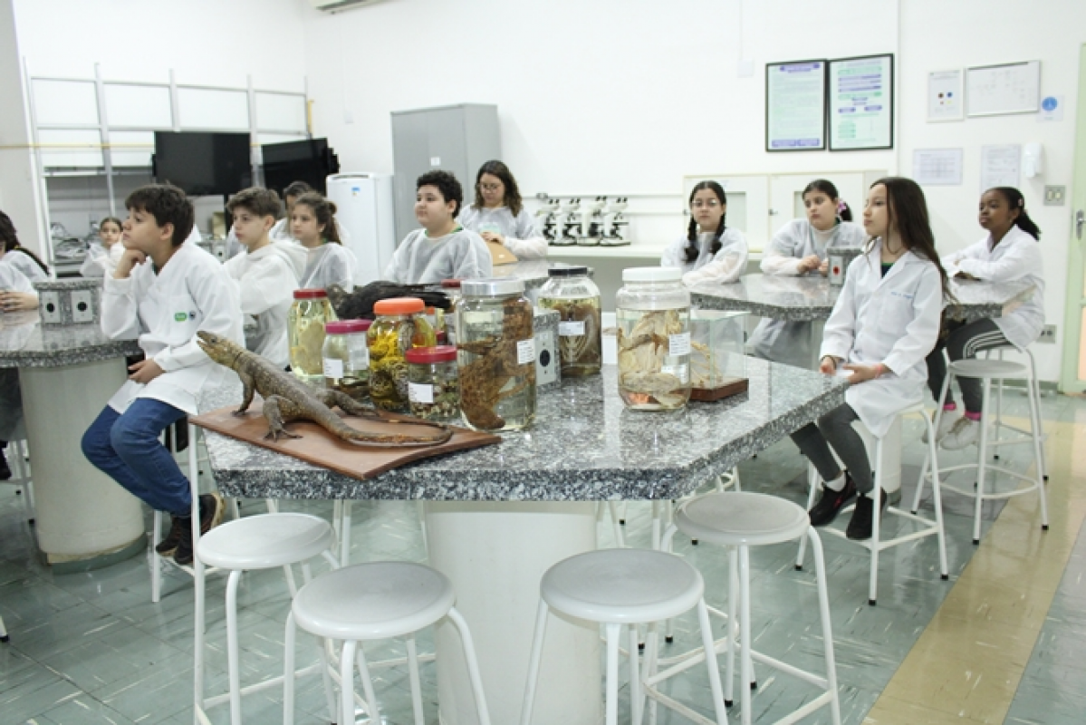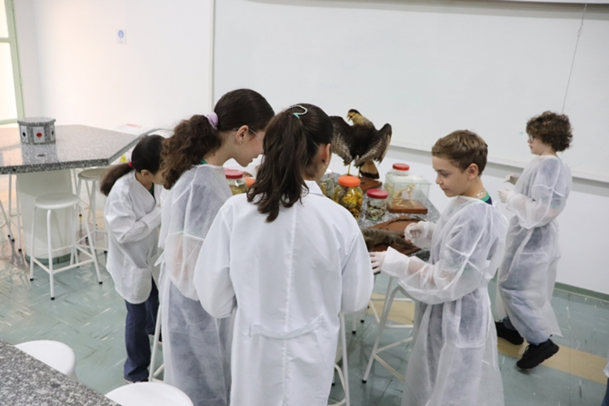 Para os dias seguintes, as turmas foram divididas em dois grupos para visitar o Laboratório de Zoologia do Centro Universitário Barão de Mauá, utilizado tanto pelos cursos de graduação da instituição quanto pelo Ensino Fundamental II e Médio do Ateneu.