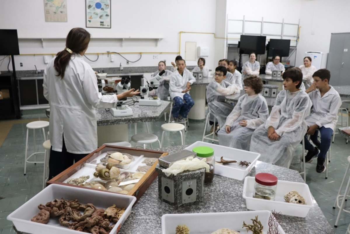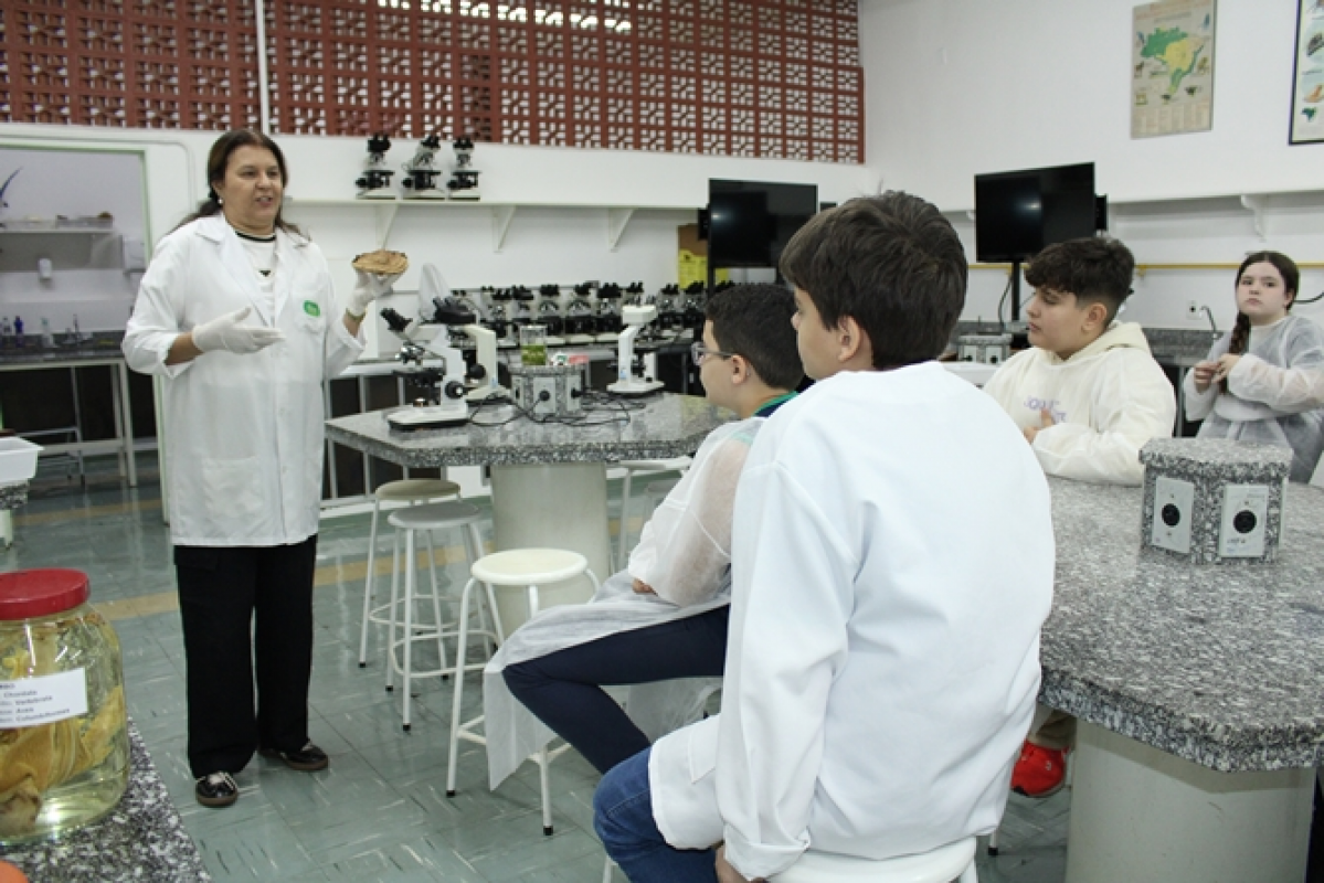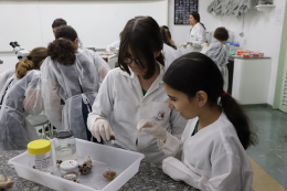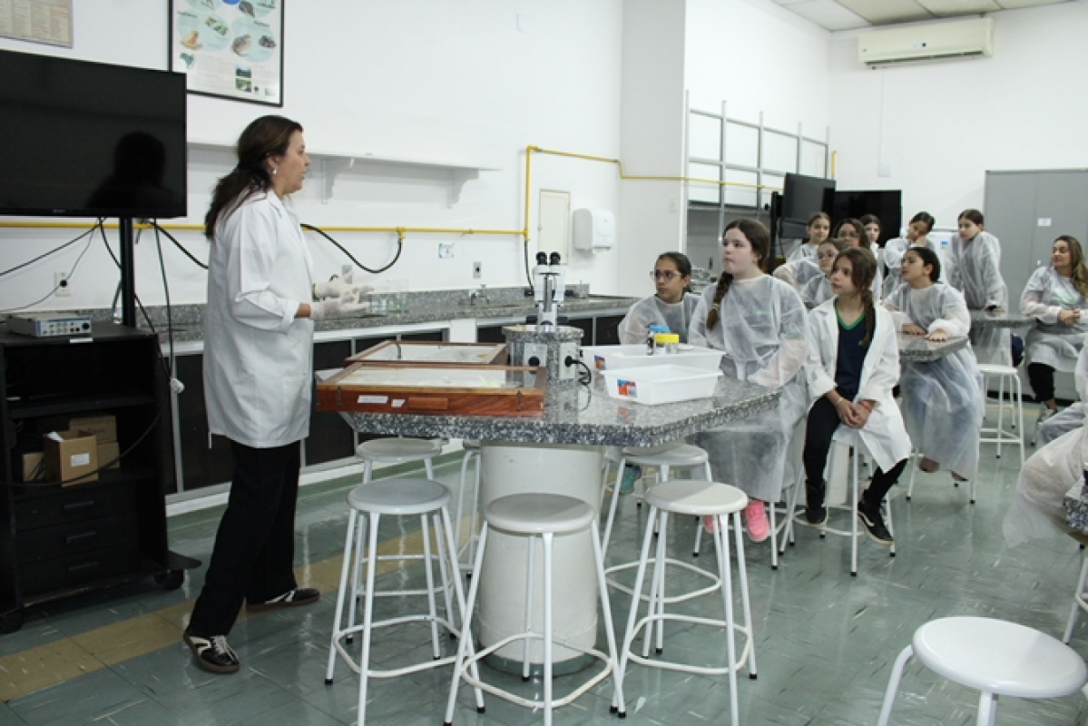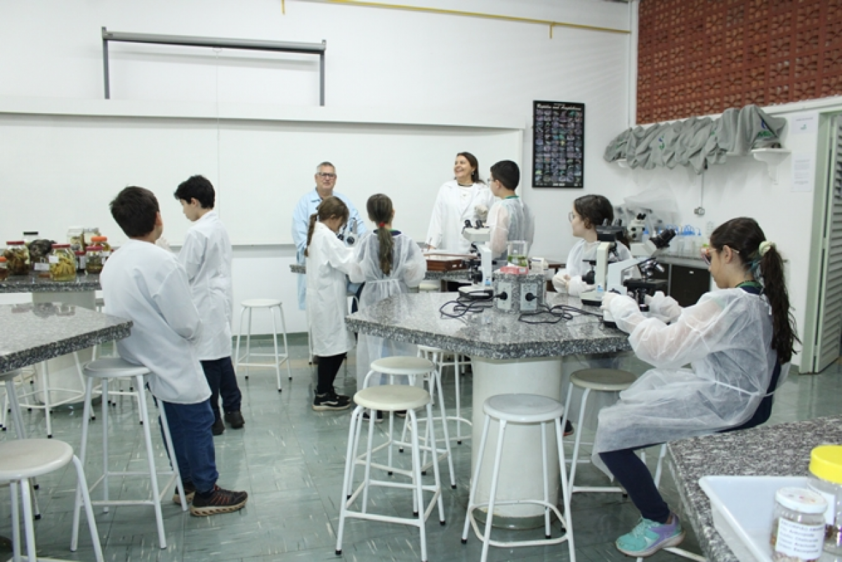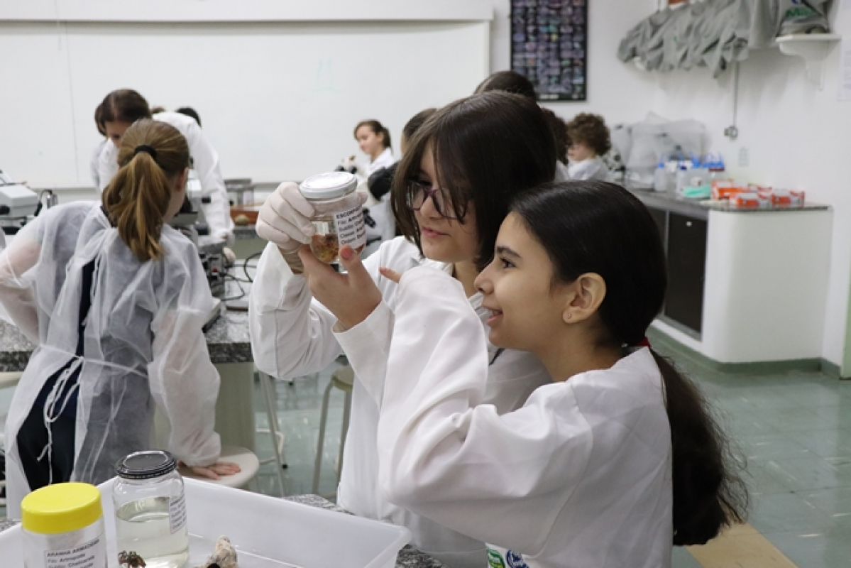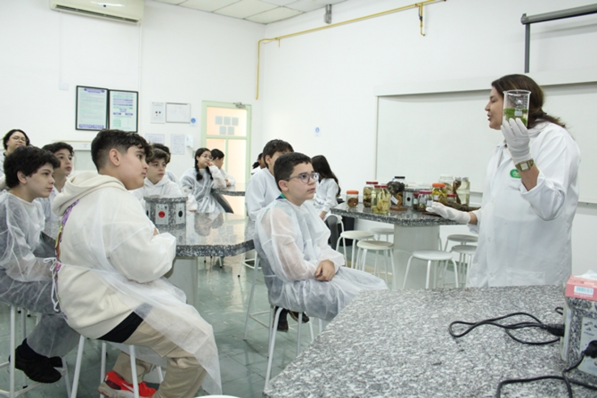 Para os dias seguintes, as turmas foram divididas em dois grupos para visitar o Laboratório de Zoologia do Centro Universitário Barão de Mauá, utilizado tanto pelos cursos de graduação da instituição quanto pelo Ensino Fundamental II e Médio do Ateneu.