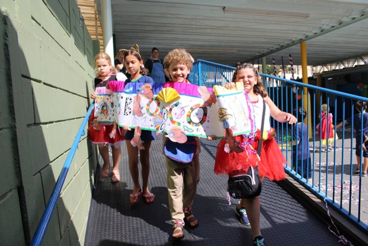 Os alunos, que puderam ir fantasiados com a temática carnavalesca, foram divididos em grupos para o desfile dos blocos: Bloco da Alegria, Folia dos Pequerruchos, Bloquinho Super Amigos, Bloco do Macaco, Agro Bloco e Carnavalescos. Os adereços utilizados nas apresentações foram produzidos pelos próprios estudantes.