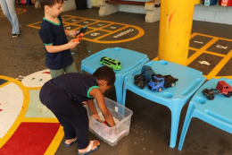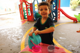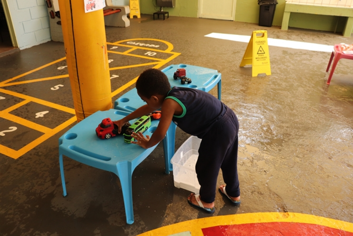 Organizadas pelas professoras Tailine e Letícia, as ações aconteceram em diferentes espaços preparados no pátio da escola, com dinâmicas que estimularam o aprendizado por meio da brincadeira. Entre as atividades, as crianças participaram de momentos como dar banho em bonecos, lavar carrinhos, brincar em uma minicozinha e com bexigas cheias de água. A escola também estava decorada com painéis temáticos com desenhos feitos pelos alunos.