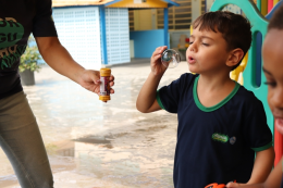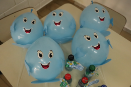 Além das vivências, os alunos também participaram da confecção de materiais como garrafinhas e saquinhos temáticos, e receberam bexigas em formato de gota como lembrança da atividade.
