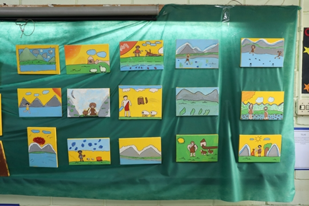 Dentre a exposição os convidados puderam analisar a origem da escrita através da arte rupestre, onde os homens das cavernas registravam suas aventuras, a contagem de seus animais, e passearam pela música ancestral, onde produziram instrumentos com elementos da natureza e material reciclado. Todos os materiais foram construídos pelos alunos com apoio do corpo docente, como desenhos de dinossauros, esculturas de dinossauros, caça ossos, apresentação musical com os instrumentos feitos pelos alunos, fantasias.